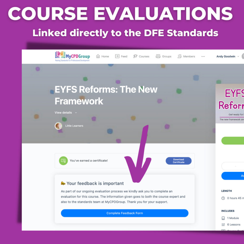 We aspire to work openly alongside the DFE Standards rather than standing behind a ‘CPD Certification’ badge. Our badge works as a gateway to our transparent standards process.